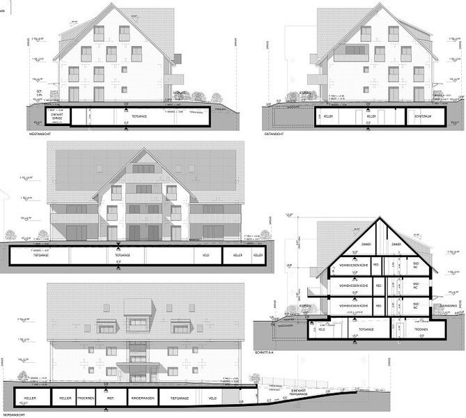 Abbruch best. Gebäude, Neubau MFH mit Unterniveaugarage und Umbau bestehenden Kindergarten |